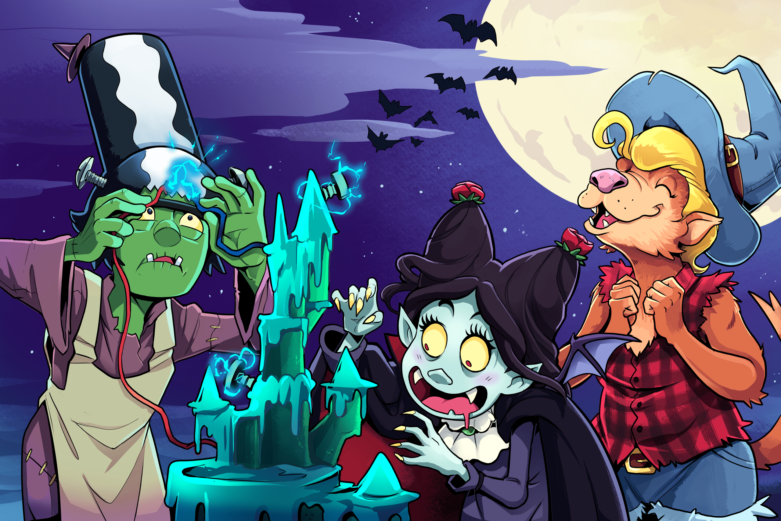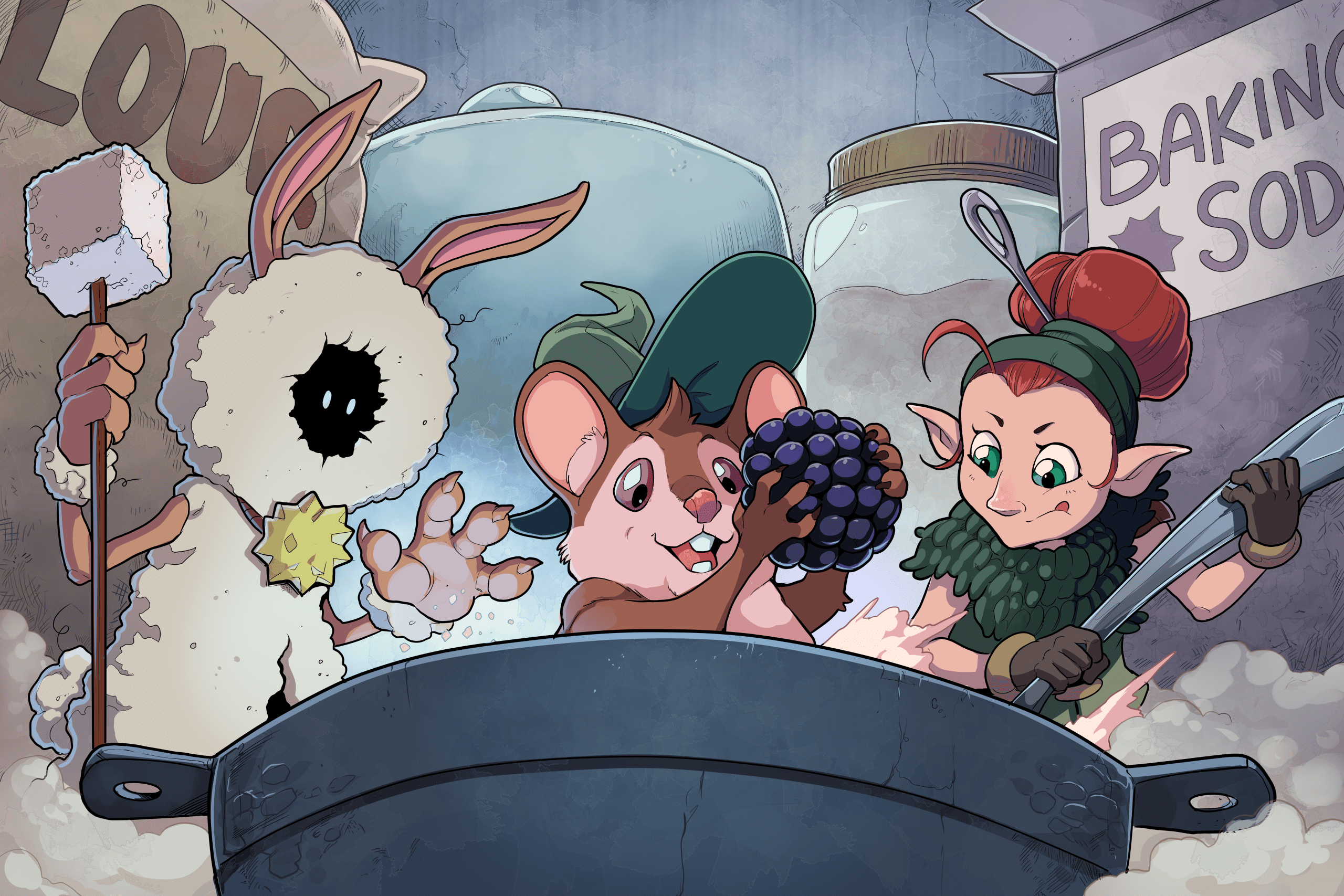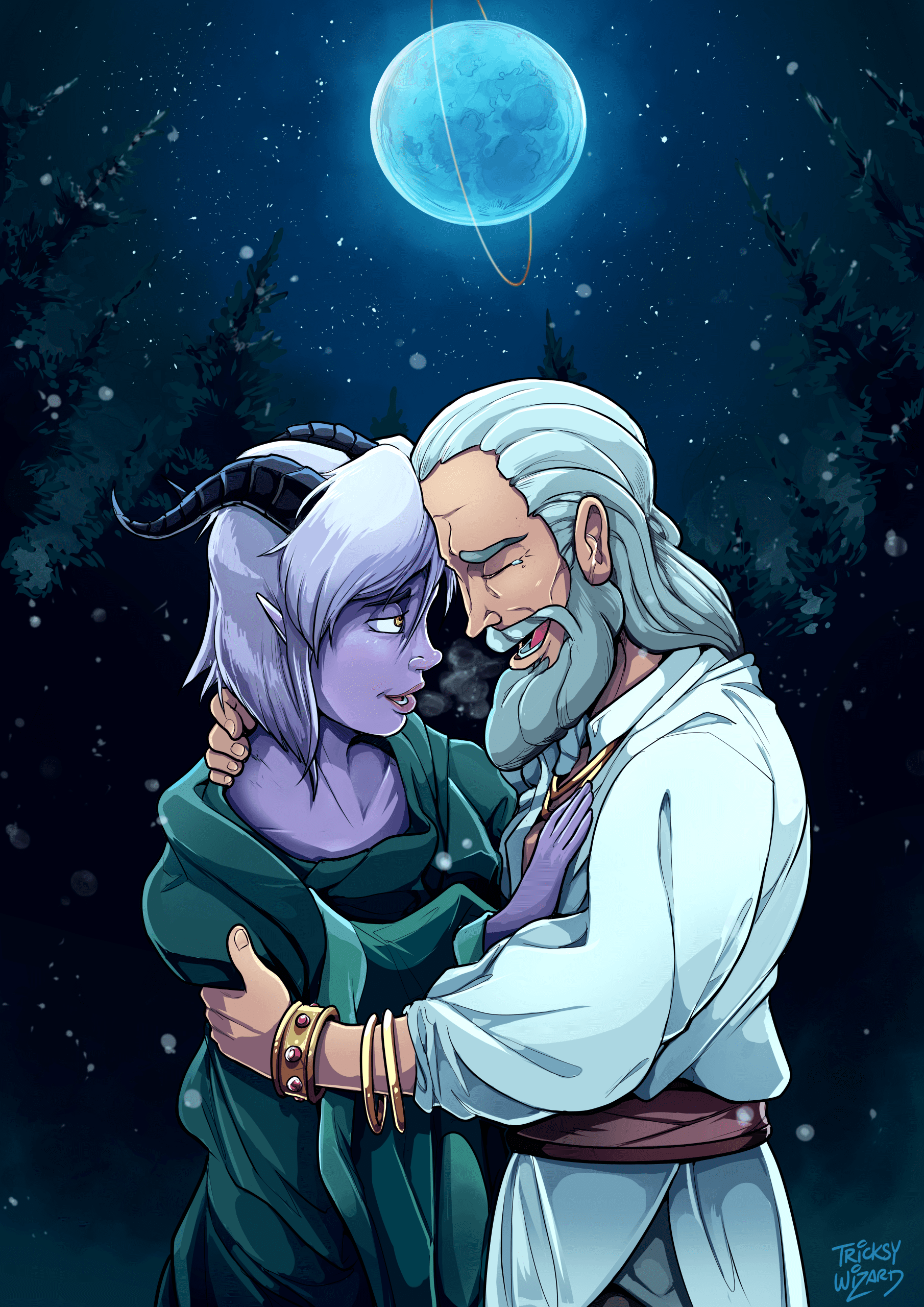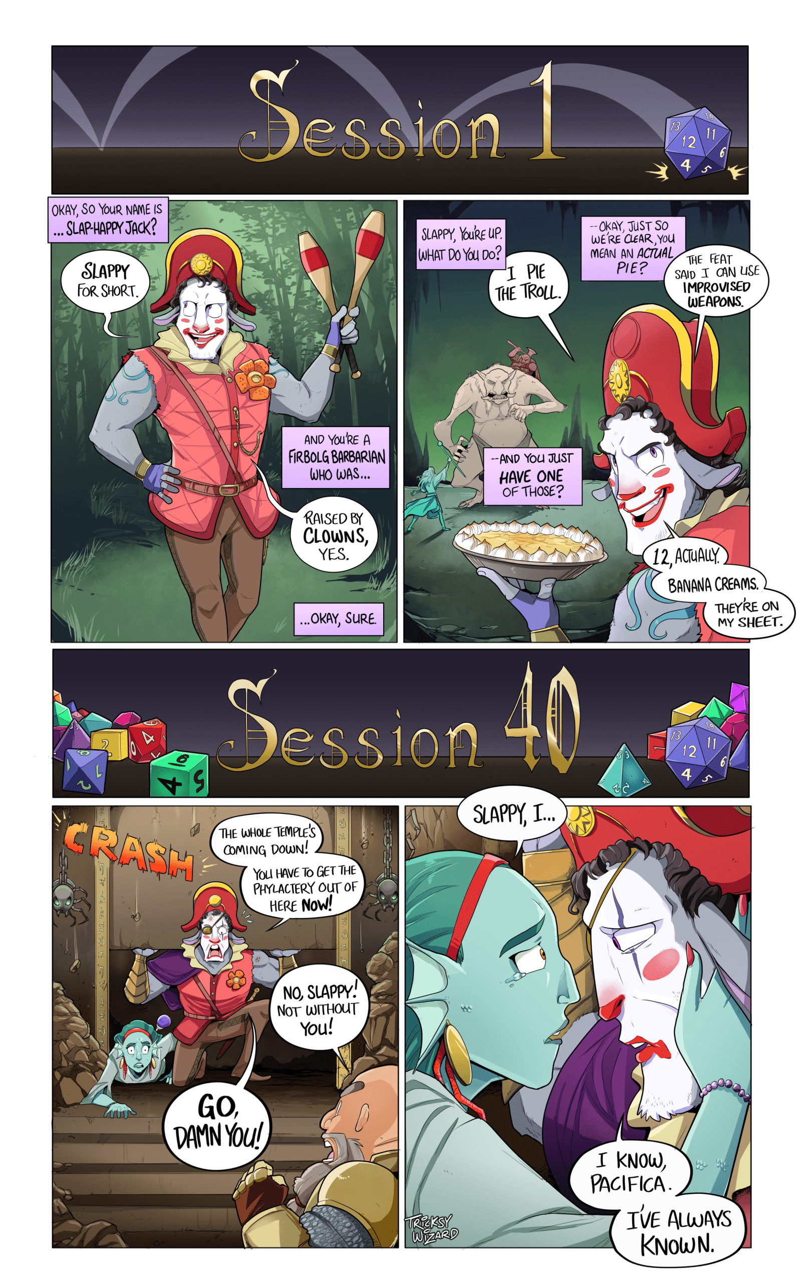 Adam (he/him) and Trout (it/its) Rice-Carlson are the storytelling duo behind Tricksy Wizard. They have been creating comics and art, and telling stories together for 10+ years, including their fantasy comic Walk On, Weetrill, the miniature tale of ttrpg legend Slap Happy Jack ‘Slappy’, and the art and accompanying storybook for the card game Witchy Cakes! Currently based in St. John’s, NL, when they’re not writing and drawing, they’re corralling their ferret, Neil, their puppy, Wassail, and their curmudgeonly cat Guthrie while also trying to find time for baking, hiking, and rolling dice!