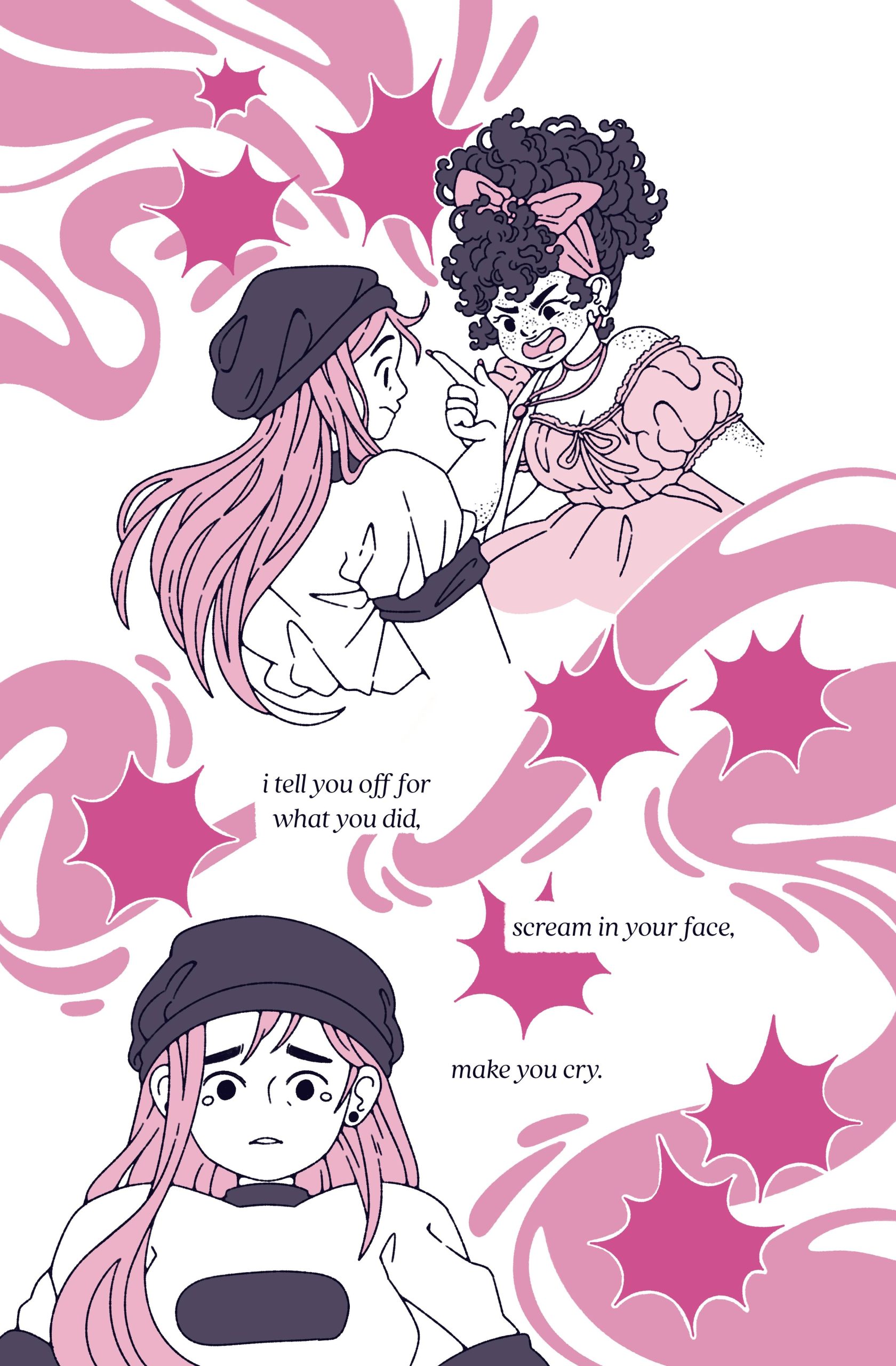 Sydney’s work combines horror with cuteness, reality with whimsy, and activism with empathy. After graduating with a BFA in Graphic Design from Cornish College of the Arts in 2018, Sydney worked as a designer while drawing comics on the side. In 2023, she earned her MFA in Visual Narrative from the School of Visual Arts and was gifted the Paula Rhodes Memorial Award for Excellence. Her work has been shown at numerous festivals across America, including Short Run, SPX, and Pride in Panels. She also has sold some of her work in bookstores on wholesale and consignment, most recently in Silver Sprocket's storefront in San Francisco. In 2023, she became a member of the Society of Illustrators in New York City. Her interests are mainly illustrating children's books or writing and illustrating middle-grade, high school, YA, and adult graphic novels. As a queer woman, she mainly writes femme and nonbinary characters and likes to sprinkle sapphic romance within her work. She enjoys utilizing horror as a mechanism for tackling important issues like toxic relationships and mental health. You can check out more of her work on her website sydneychavan.com and her Instagram @sydneycarts.